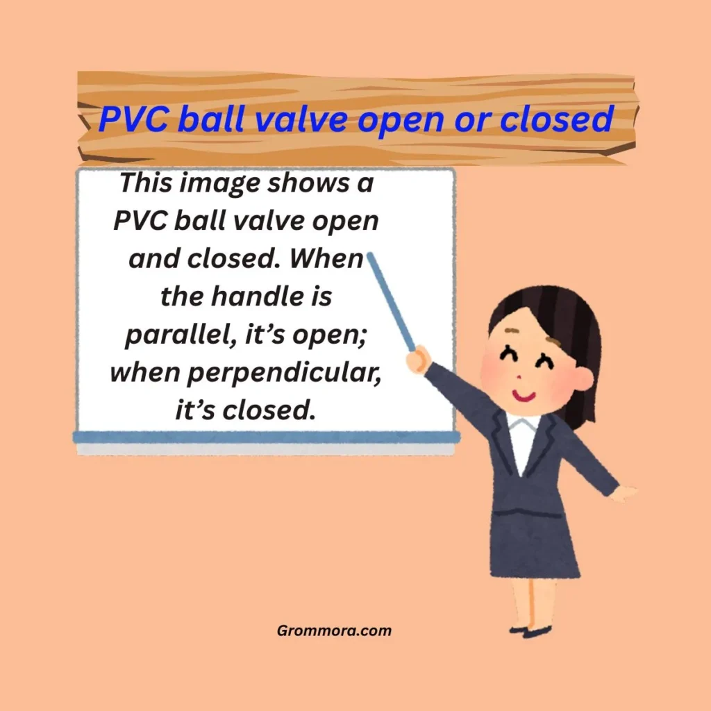 A PVC ball valve is open or closed based on the handle position, not the direction you turn it. When the handle is parallel to the PVC pipe, the valve is open, and water or fluid can flow freely through the system. When the handle is perpendicular to the pipe, the valve is closed, and flow is completely stopped. This rule applies to most PVC ball valves used in plumbing, irrigation, aquariums, and industrial systems. Many PVC valves also include molded arrows or “ON/OFF” markings, which help confirm the position. If no markings are present, always rely on handle alignment. Avoid leaving a PVC ball valve partially open, as this can wear out the internal ball and seals over time. Understanding this simple visual rule prevents leaks, pressure issues, and system damage.