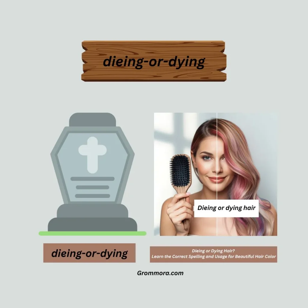When it comes to hair color, the correct spelling is “dyeing hair,” not “dieing hair” or “dying hair.” This confusion happens because dye and die sound similar but have very different meanings. Dyeing hair means applying color to change the hair’s appearance, while dying hair would literally mean hair losing life, which is not what people intend. In English, the verb dye keeps the “e” when adding -ing, so it becomes dyeing, not dying. For example, She is dyeing her hair blonde is correct. On the other hand, She is dying her hair blonde is incorrect and misleading. Therefore, when writing blogs, salon ads, or social posts, always use dyeing hair for accuracy and professionalism.