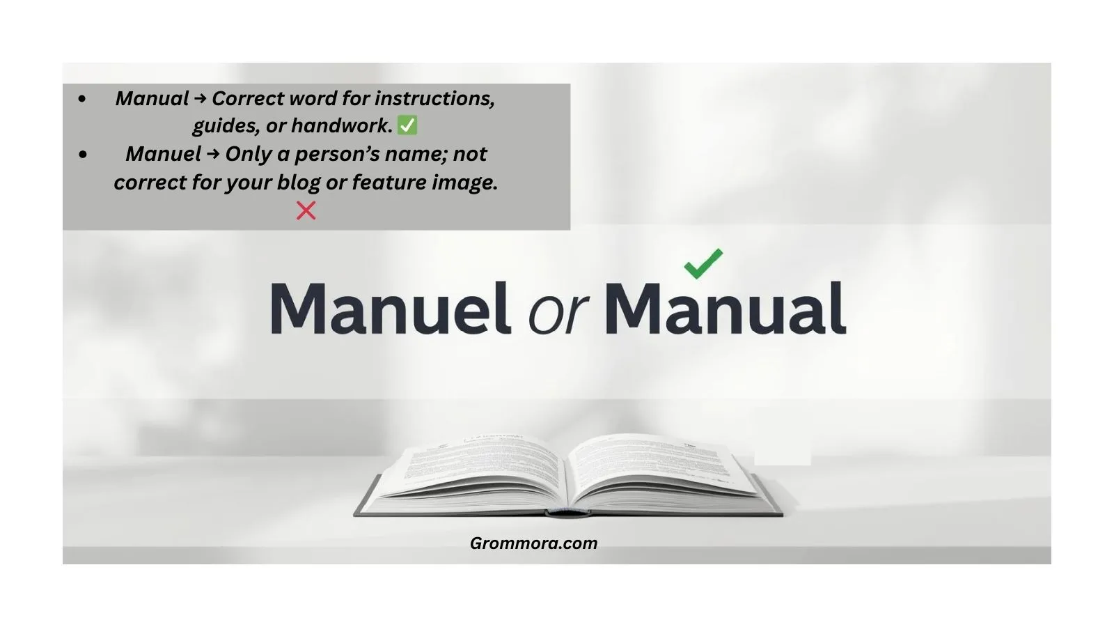 The confusion between manuel or manual is simple but very common. In clear English usage, manual is the only correct spelling when you mean a guide, instructions, or something done by hand. Manuel is not a spelling variation—it is a name or a word from other languages.