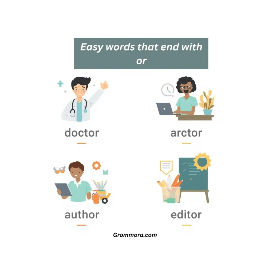 Easy words that end with OR are common, simple, and used in daily English. These words are easy to remember because many of them describe people, jobs, or roles. Examples include doctor, actor, teacher, author, editor, and visitor. You hear and use these words in school, at work, and in everyday conversations. For example, a doctor helps sick people, an actor performs in movies, and an author writes books. These words always end in -or, no matter if you are using American or British English. That makes them easy and safe to use in all types of writing. Learning easy words that end with OR helps improve vocabulary, speaking skills, and basic grammar. They are perfect for beginners, students, and anyone learning English.